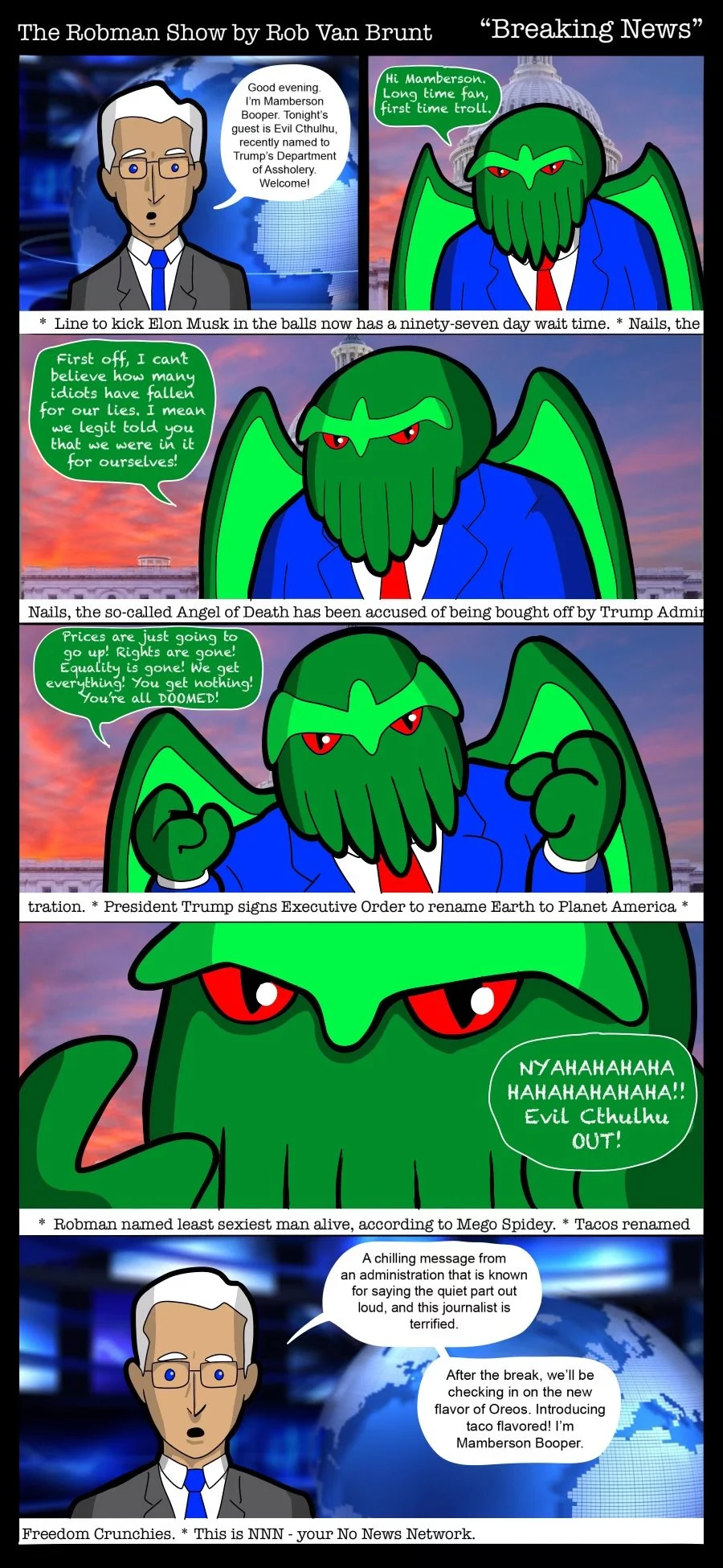 THE ROBMAN SHOW! Episode 75 “Breaking News” Featured Feb 16 Written By Rob Van Brunt A new comic strip every Sunday morning from Rob Van BruntFollow The Robman Show on Instagram Rob Van Brunt For Classic Robman Show Comics Click Here!
