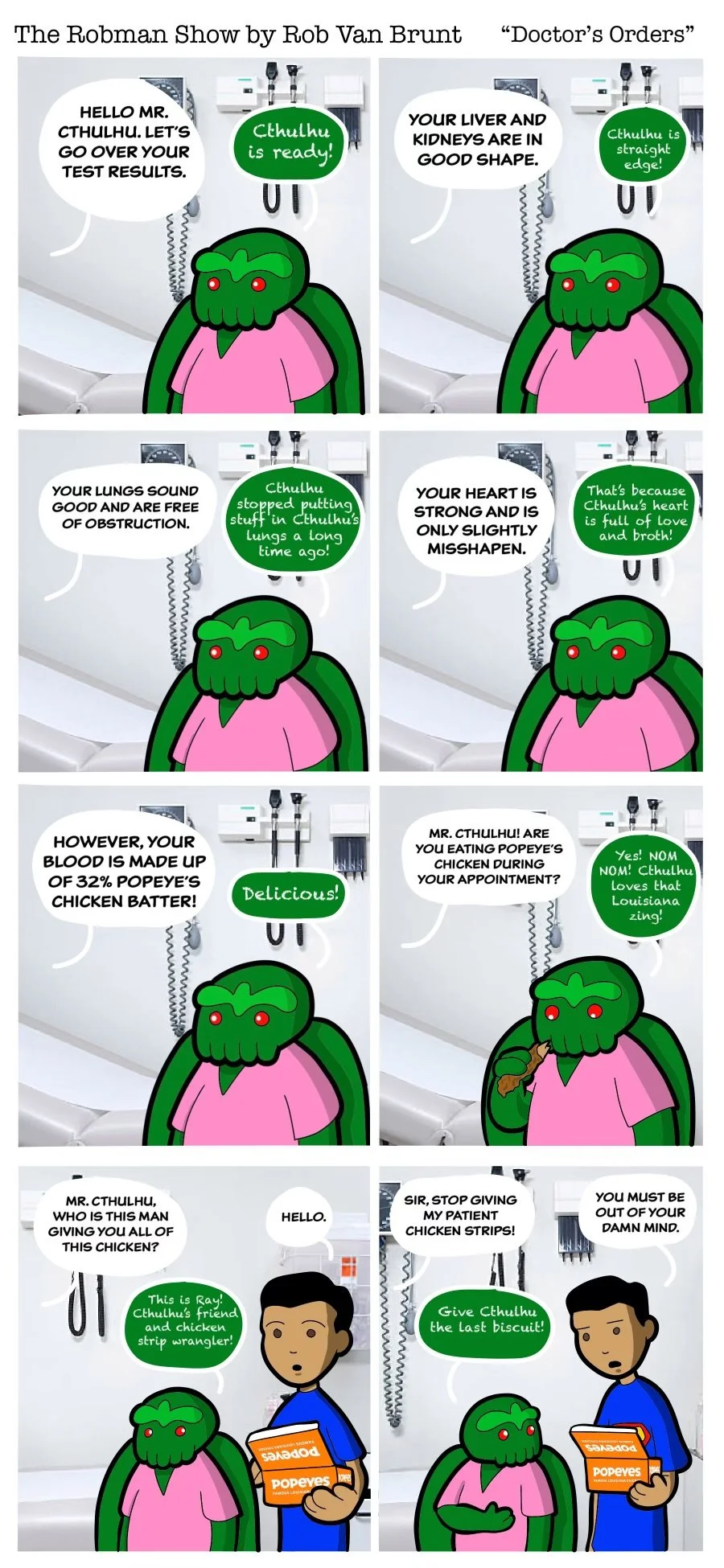 THE ROBMAN SHOW! Episode 89 “Doctor’s Orders” Featured May 25 Written By Rob Van Brunt A new comic strip every Sunday morning from Rob Van BruntFollow The Robman Show on Instagram Rob Van Brunt For Classic Robman Show Comics Click Here!
