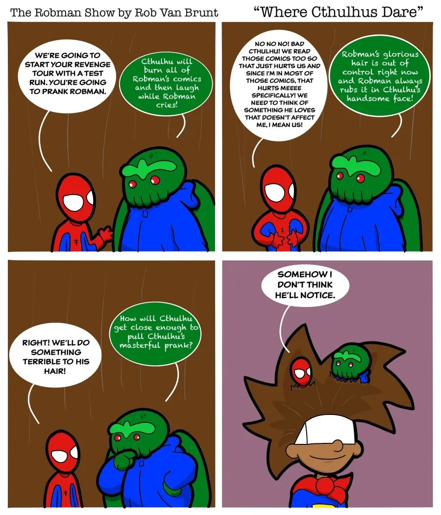 THE ROBMAN SHOW! Episode 136 “Where Cthulhus Dare” Featured Apr 26 Written By Rob Van Brunt A new comic strip every Sunday morning from Rob Van BruntFollow The Robman Show on Instagram Rob Van Brunt For Classic Robman Show Comics Click Here!