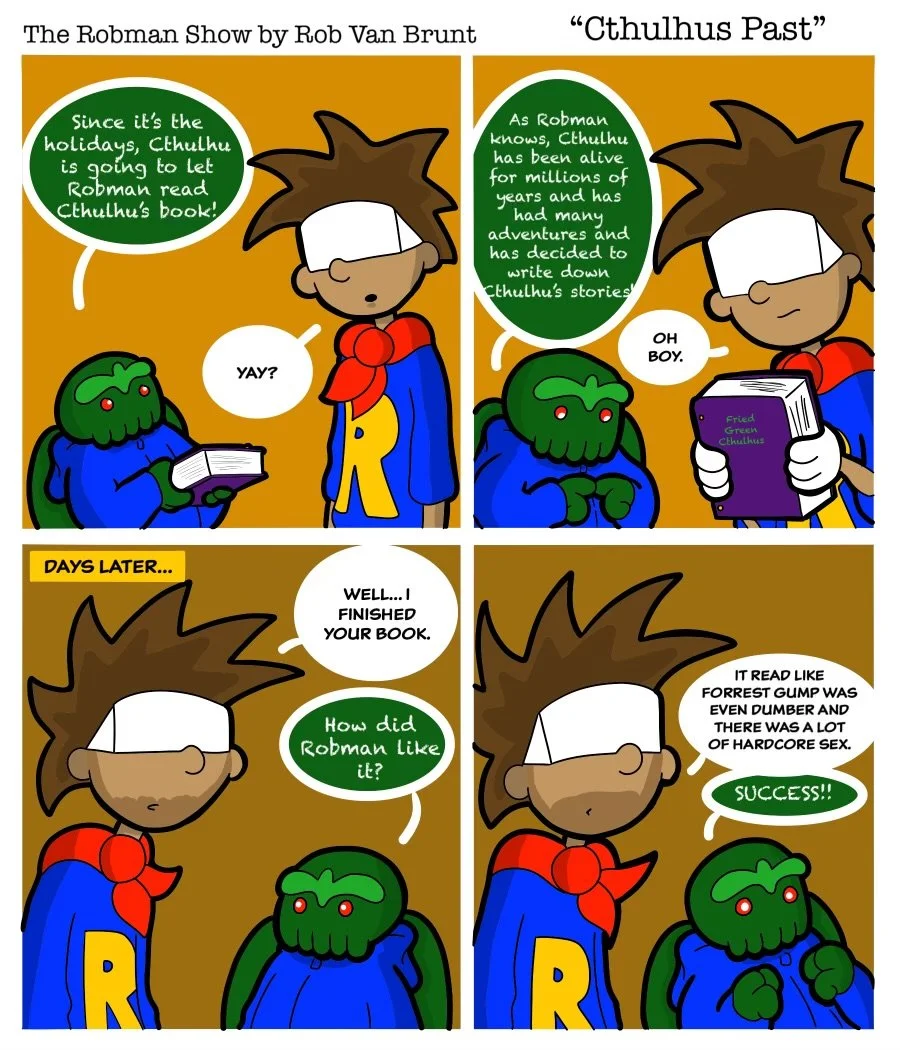 THE ROBMAN SHOW! Episode 120 “Cthulhu’s Past” Featured Dec 21 Written By Rob Van Brunt A new comic strip every Sunday morning from Rob Van BruntFollow The Robman Show on Instagram Rob Van Brunt For Classic Robman Show Comics Click Here!