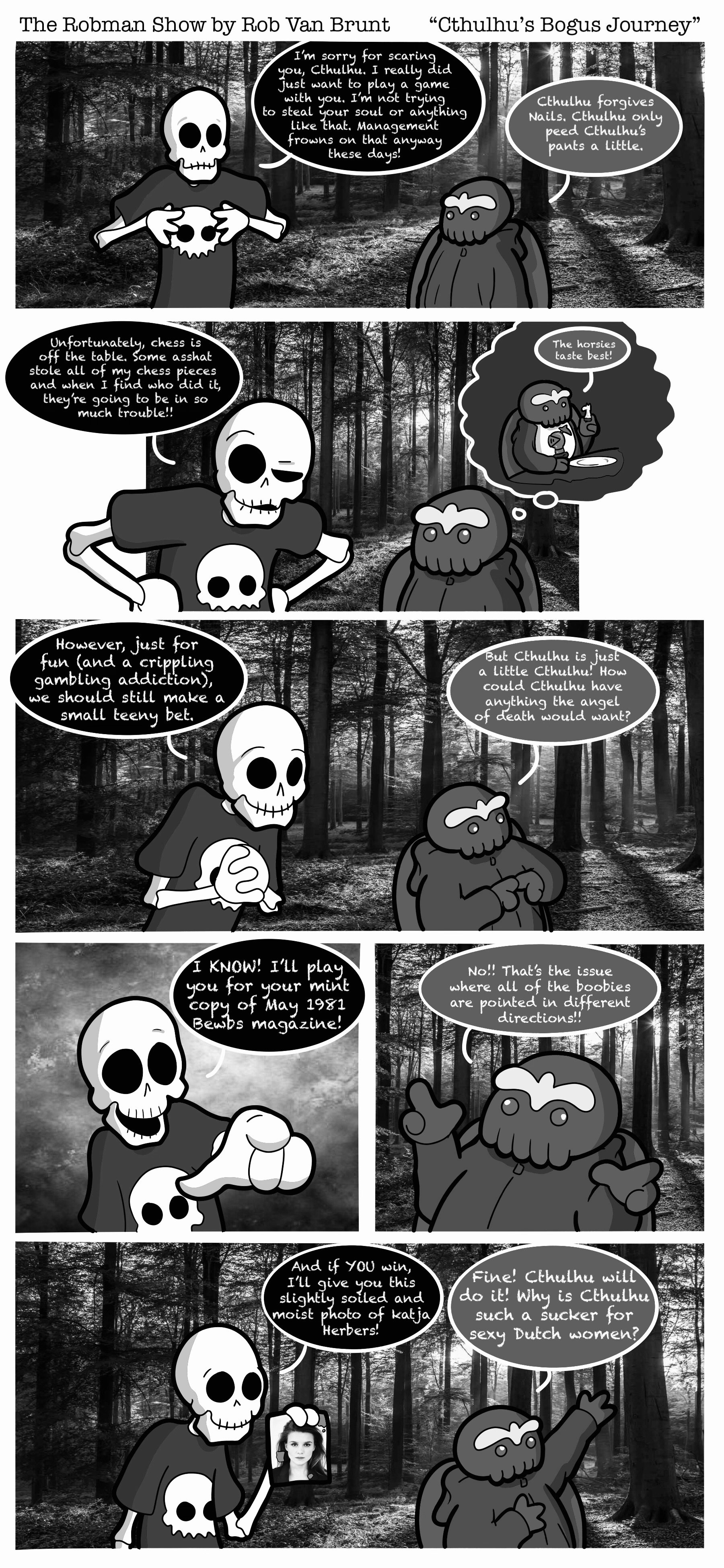 THE ROBMAN SHOW! Episode 126 “Cthulhu’s Bogus Journey” Featured Feb 1 Written By Rob Van Brunt A new comic strip every Sunday morning from Rob Van BruntFollow The Robman Show on Instagram Rob Van Brunt For Classic Robman Show Comics Click Here!